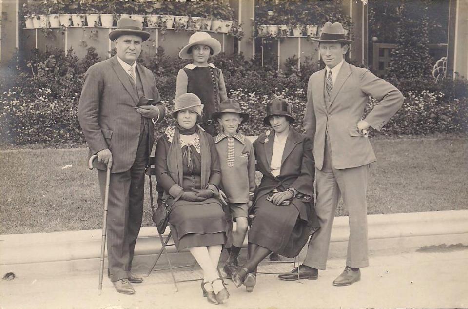 לאה והוריה (משה משמאל, לולה על הספסל מצד שמאל)