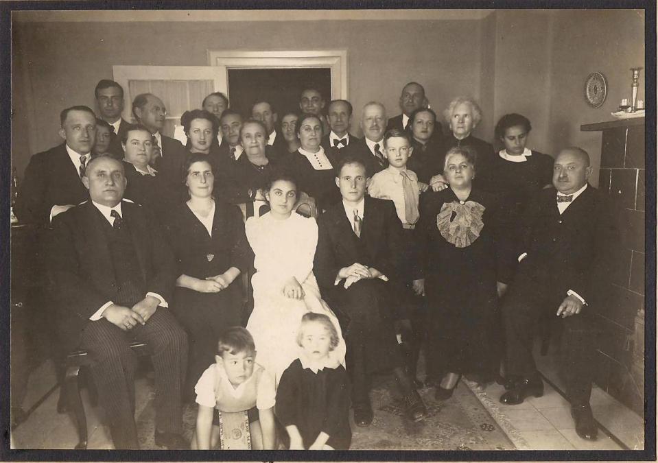 → התמונה הקודמת התמונה הבאה ← חתונתם של לאה ומשה, 1937 (יושבים בשורה הראשונה, מימין: יצחק לנדוי, לולה דוכן, משה לנדוי, לאה דוכן, בטי לנדוי, משה דוכן. בשורה האחרונה, קיצוני משמאל: מיכאל לנדוי, אחיו של משה) אהבתי טוען...
