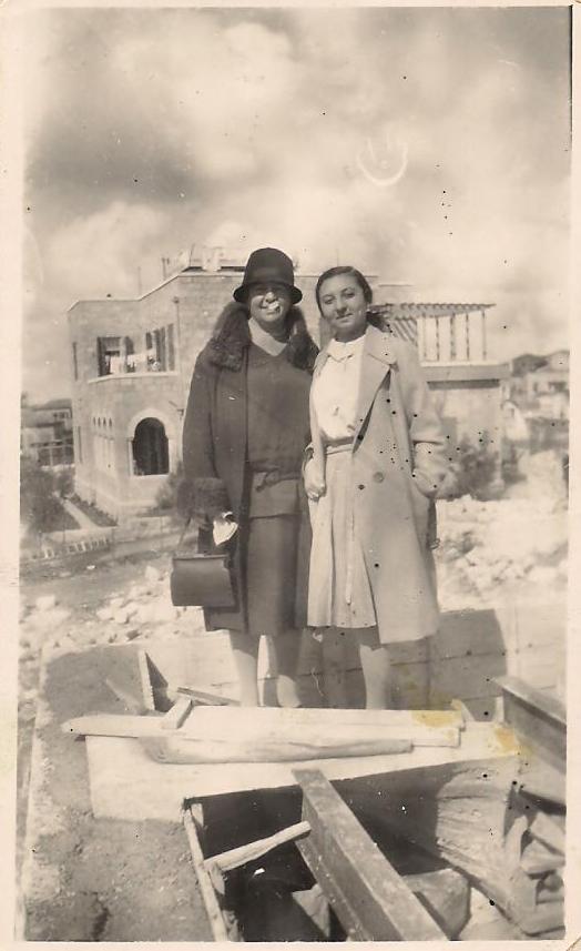 לאה ואמה לולה, על רקע הבית הנבנה בירושלים