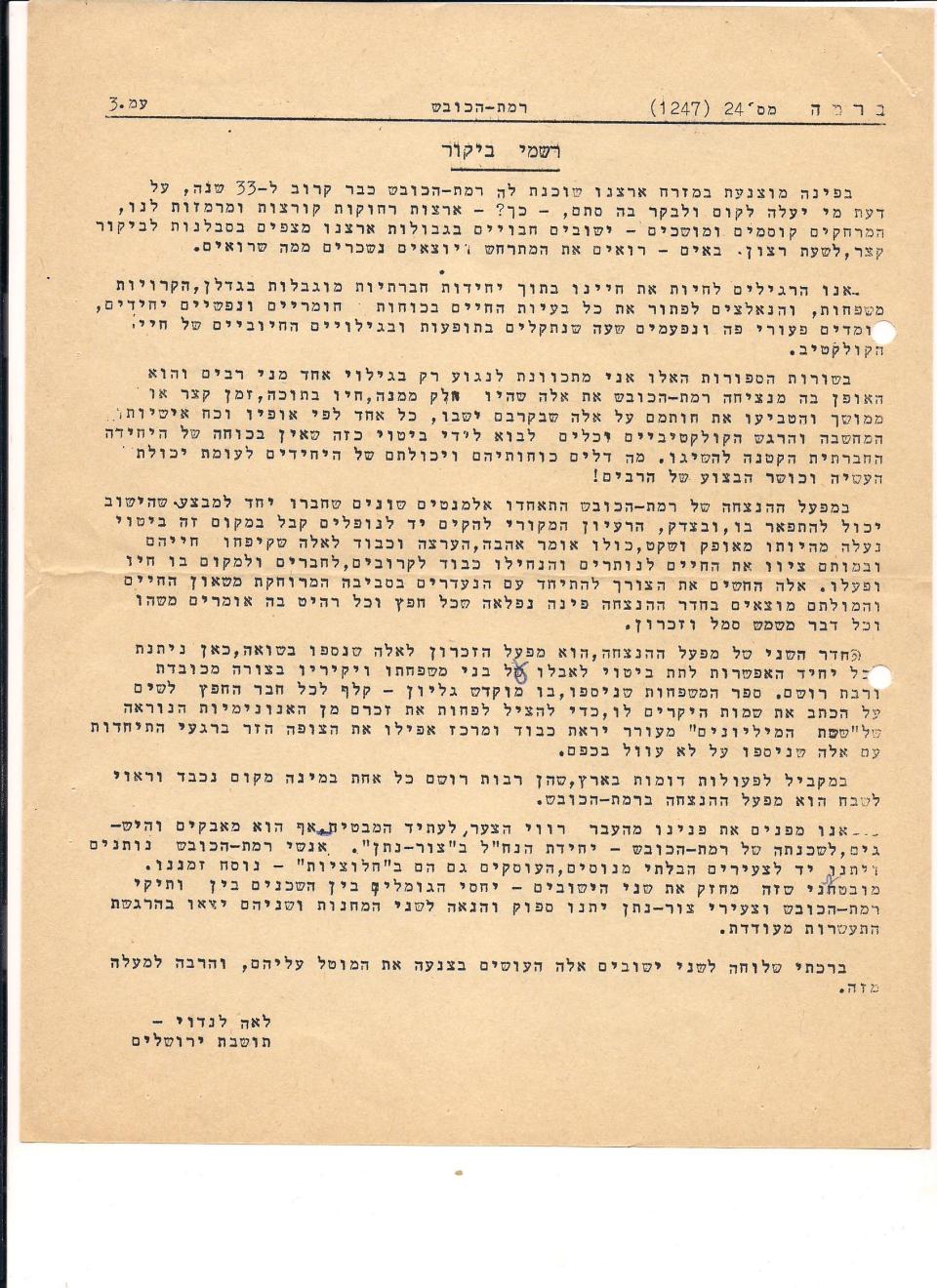 רשמים מביקור בקיבוץ רמת-הכובש, "ברמה" 1967